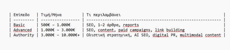 • Μακροπρόθεσμη αύξηση brand authority και οργανικών conversions