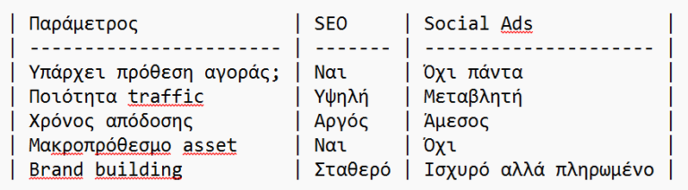 Η σύγκριση αυτή διαφέρει σημαντικά από το SEO vs Google Ads.