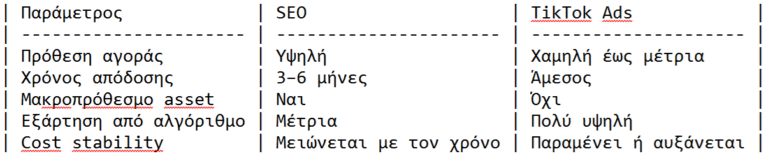Η σύγκριση SEO vs TikTok Ads δεν είναι σύγκριση εργαλείων. Είναι σύγκριση στρατηγικής ανάπτυξης.